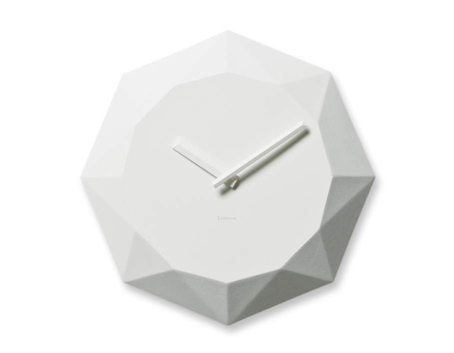 鑽石是無論任何年齡層收到都會很開心的一種禮物,切割是表現鑽石光輝的一個方式,由圓心規則性的排列組成。配合直線切割,形成像鑽石般的12個面也象徵12個時間數字,且微妙的立體陰影根據一天當中光的方向和強弱不同,讓它更顯生動。因為每天都需要看時鐘,所以更想放上美麗的代表。讓它從早到晚傳達美麗的訊息給您。