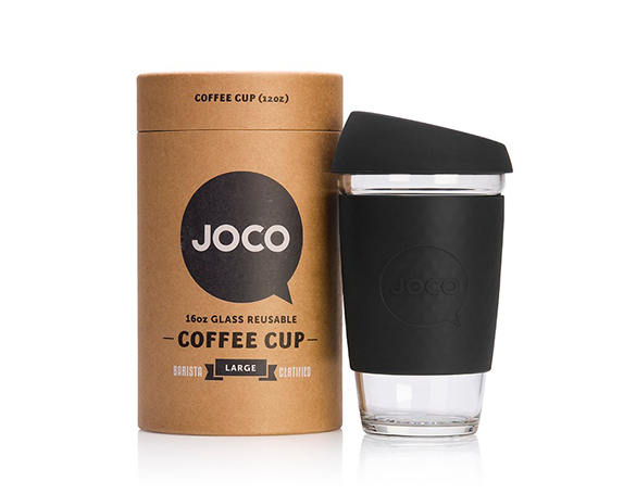 早晨一杯咖啡已經成為了上班族不可或缺的精力來源之一,然而每天用過即丟的紙杯已經造成生態資源不斷的耗損,JOCO cups玻璃咖啡隨行杯以強化玻璃作為杯身,把手以矽膠製成,除了防燙手以外也有保溫的功能,杯蓋的結構也特別經過設計,不必再擔心咖啡拿在手上會灑的到處都是。